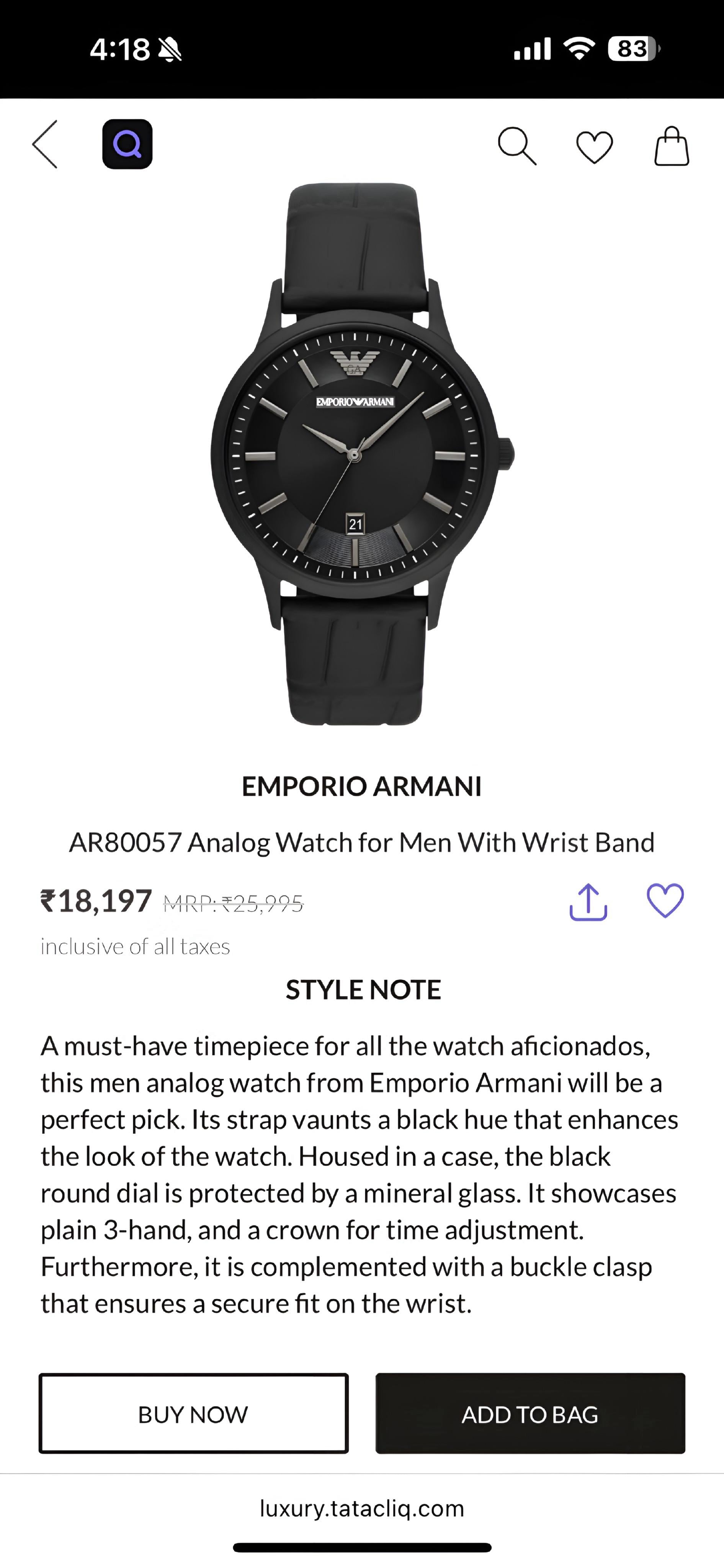 *“AR80057 by Emporio Armani: Minimalist elegance in jet-black.* ❤️