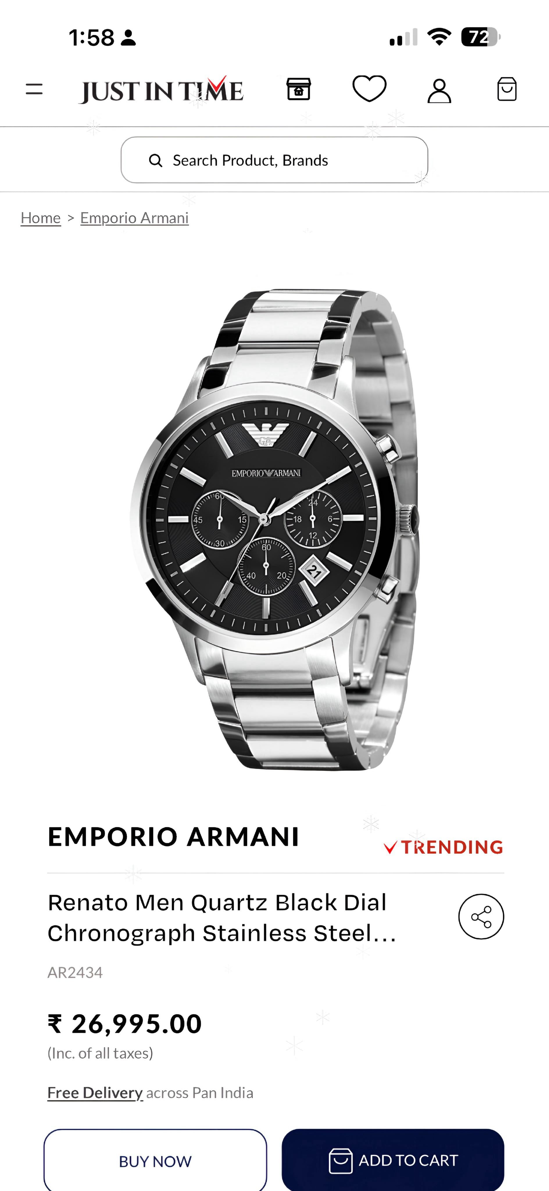 *A bold expression of Italian elegance, the Emporio Armani chronograph watch offers both style and functionality. Designed for the modern man, effortlessly complements everyday wear.* ⌚