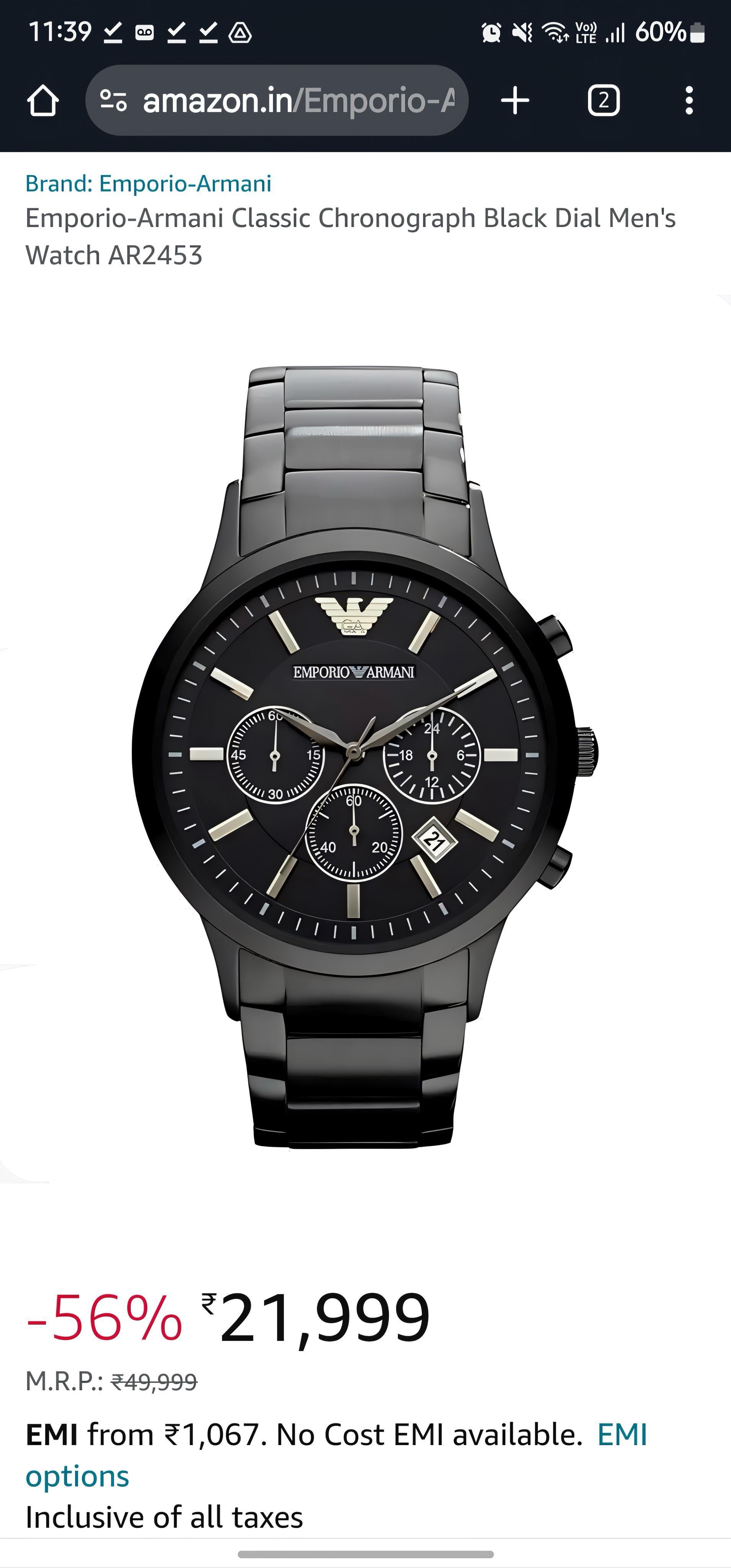 *Men's stylish Emporio Armani Renato AR2453 wristwatch is the perfect choice for everyday wear.* 🤩