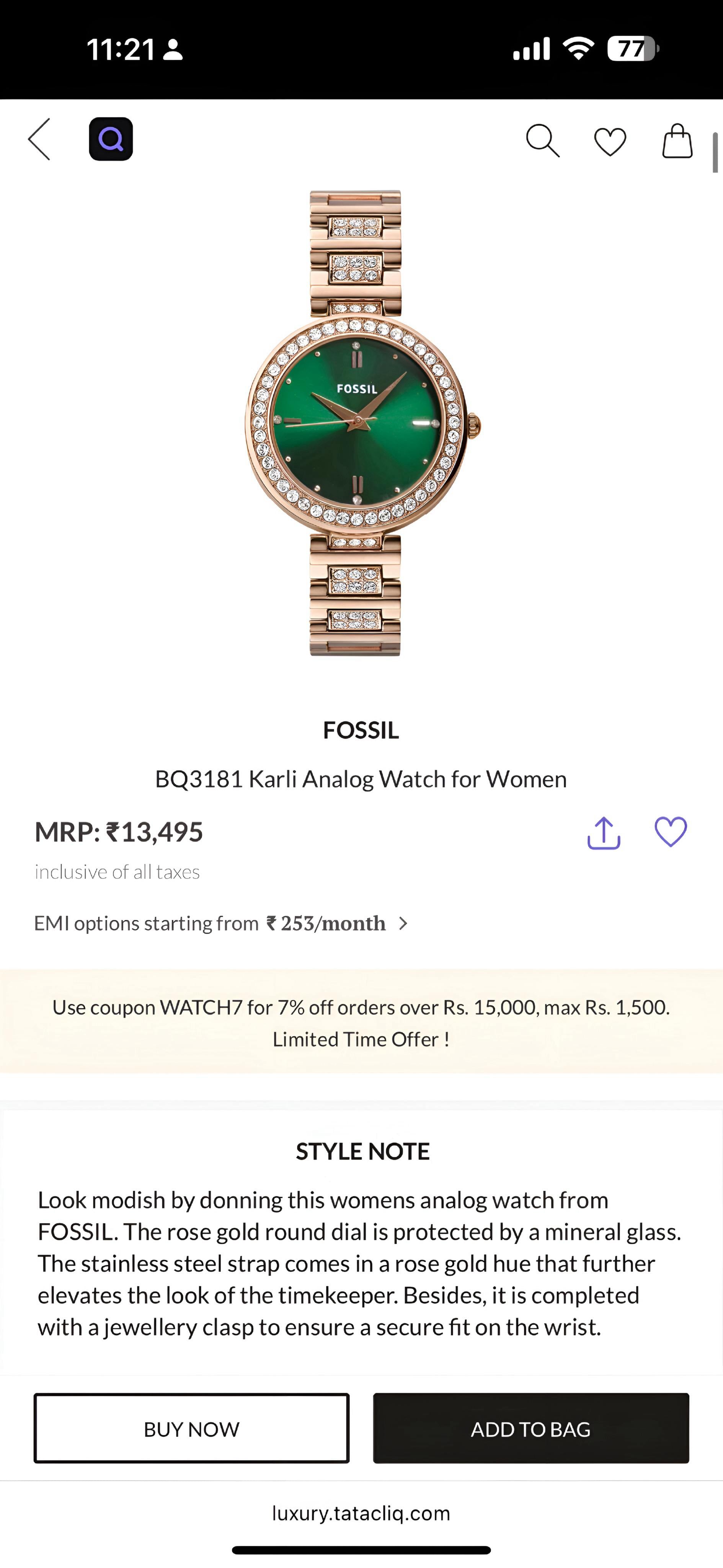 ✅ *Fossil Premius Karli Women's watch radiates timeless charm with its rose gold tone and shimmering crystal accents add a perfect blend of sophistication and sparkle luxury on the wrist.* ✅